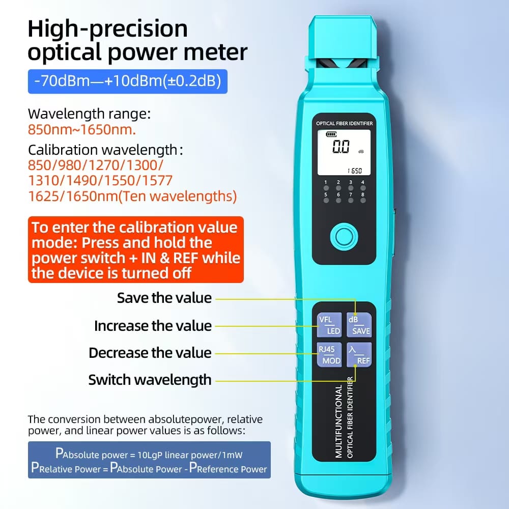 Optic Fiber identifier with VFL +OPM + RJ45 Testing