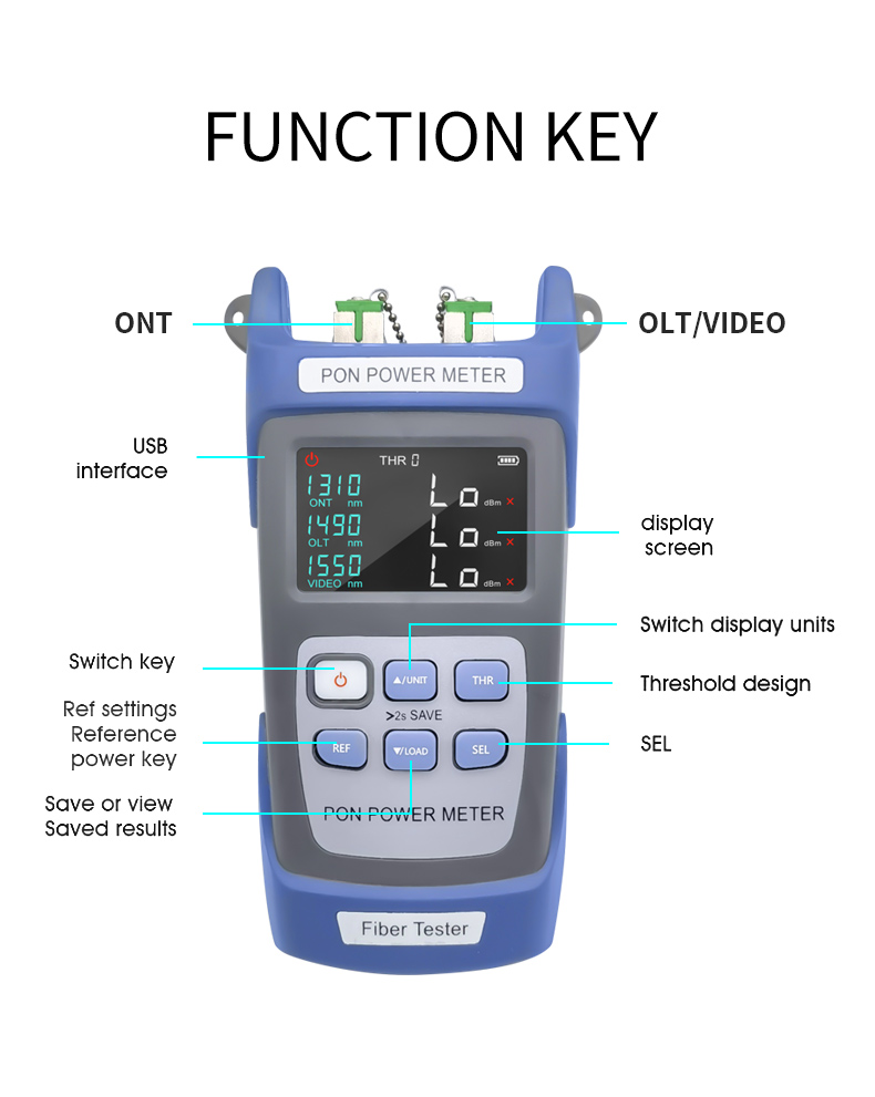 3. Supports simultaneous measurement and display of voice, data and video signals on the PON architecture.
