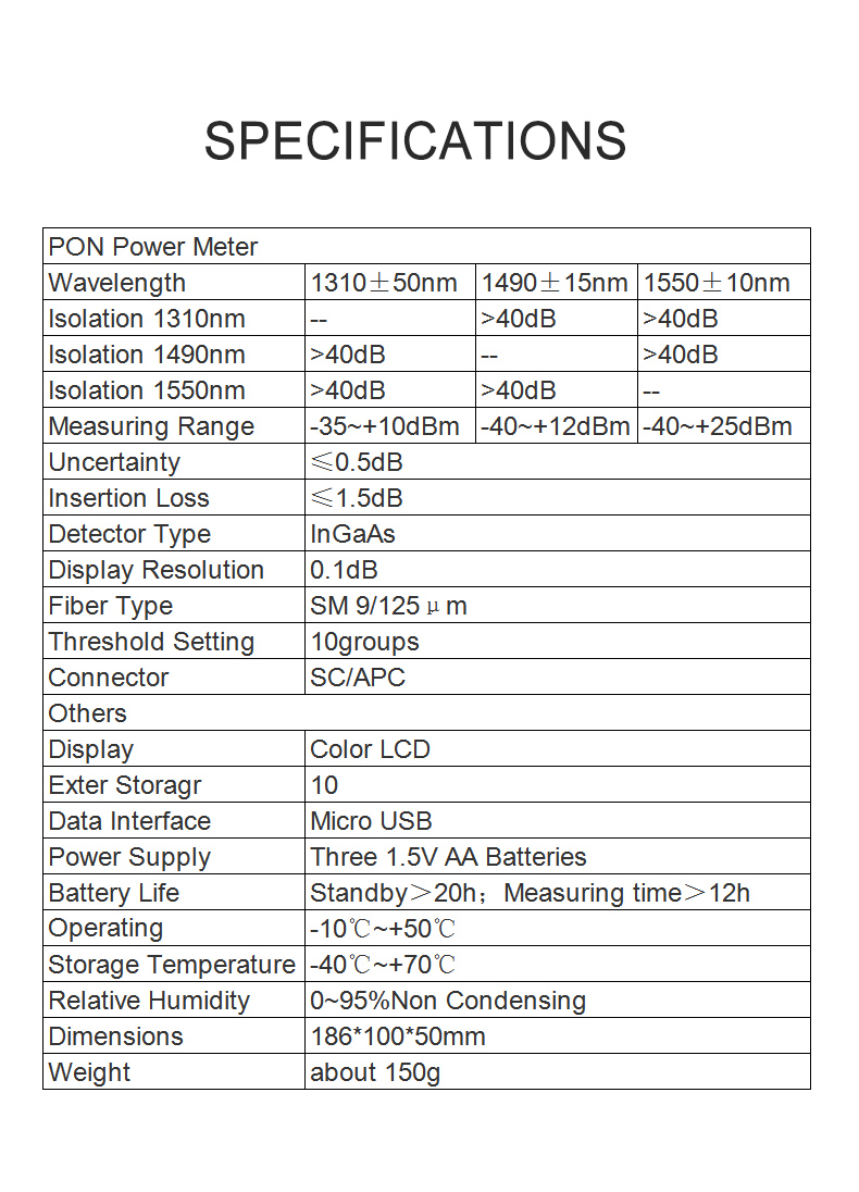 2. Range: -35~+10dBm / -40~+12dBm / -40~+25dBm
